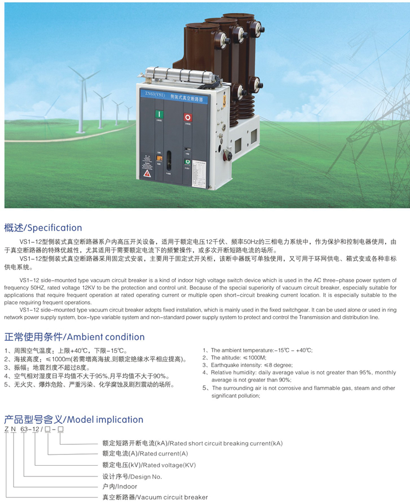 ZN63(VS1)-12側裝式真空斷路器