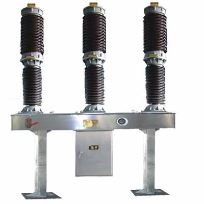 斷路器采用三極瓷套支柱式結構,三個極柱安裝在共同的基座上。極柱上部為滅弧室,下部為支柱瓷套。基座內裝有三相聯動的傳動系統和三極柱SF6氣體連通的管路系統及SF6氣體密度控制器。控制柜居中吊裝在基座下面,柜內有三極共同配用的一個彈簧操動機構和控制單元。機構的輸出桿與B極的外拐臂相連,再通過水平連桿進行三極機械聯動操作。